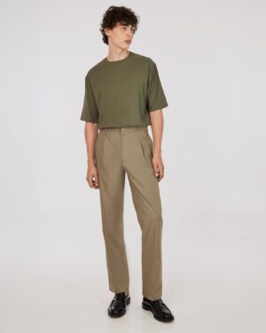 Olive T shirt με στρογγυλό λαιμό από 50%μεταξι 50%βισκοζη.