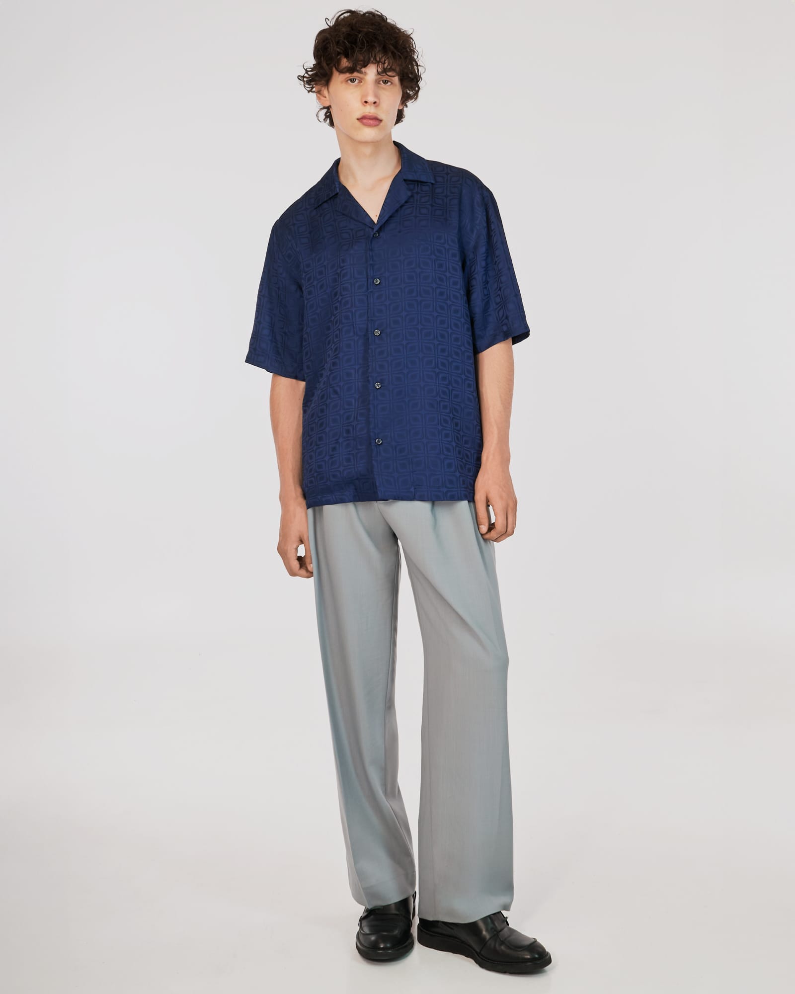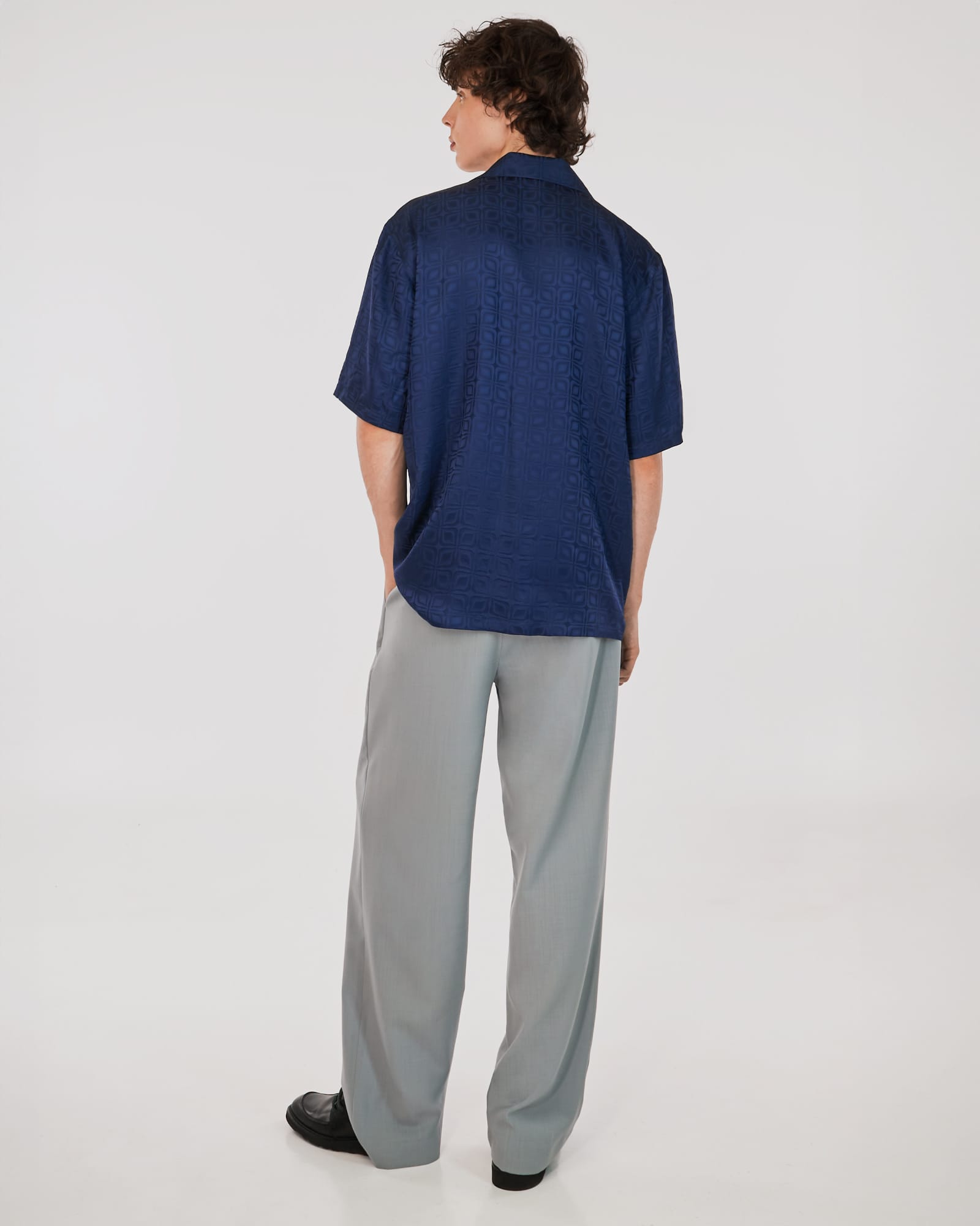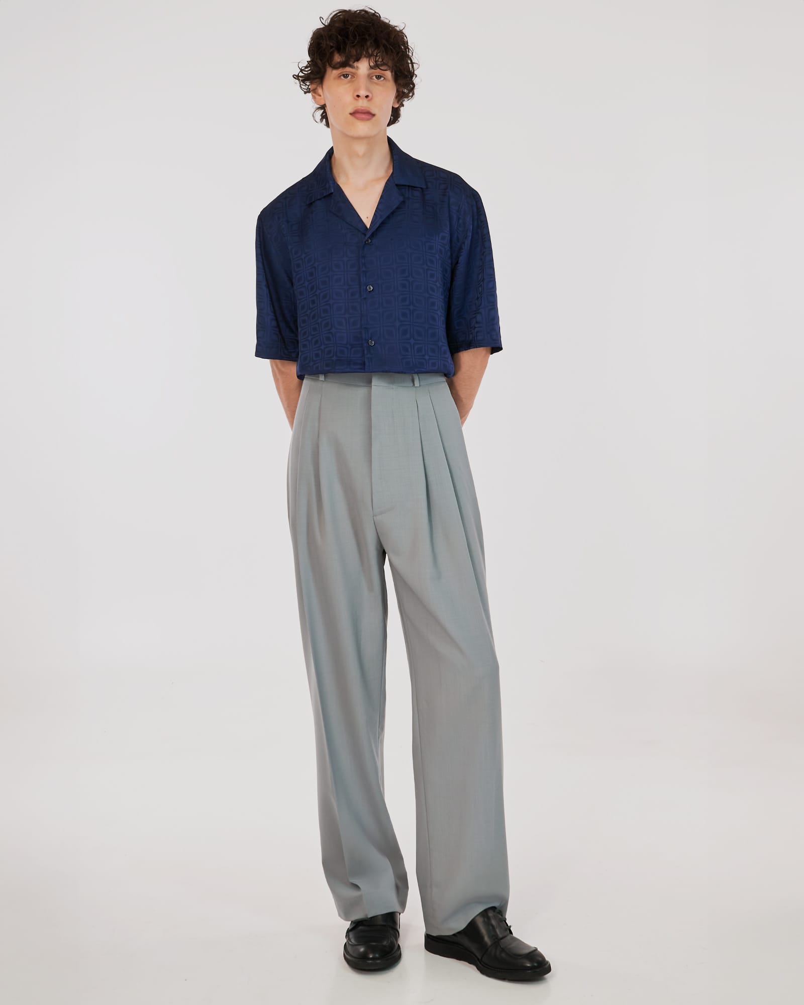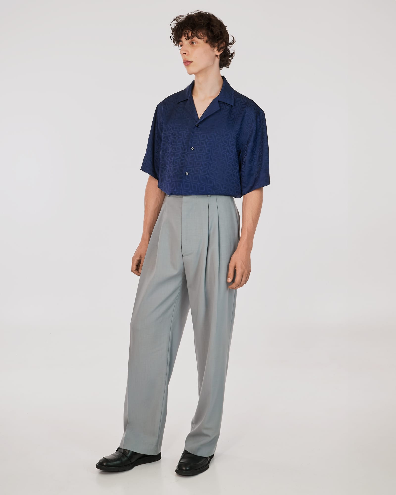 Ψηλόμεσο παντελόνι με δυο πιέτες σε ανοιχτό γκρι χρώμα, κουμπιά κατά μήκος του καβάλου και τσέπες στο πίσω μέρος από 100%cool wool.
